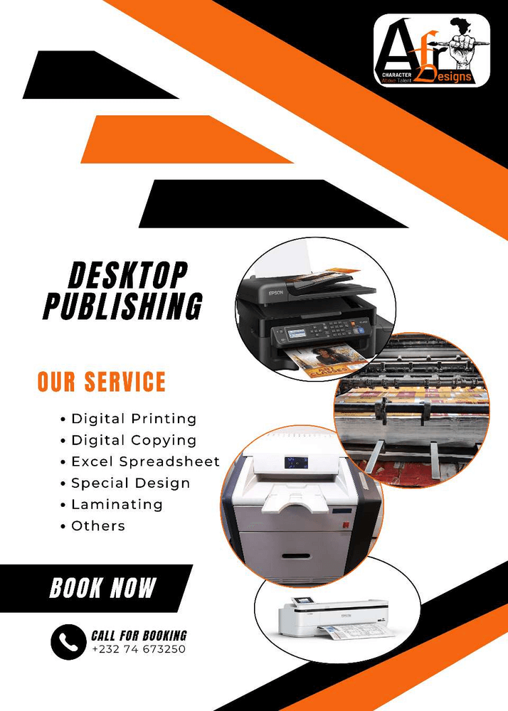 We provide quality Desktop Publishing services from Typing & Printing (Multi-purpose Printing), Photocopying, Report Card Printing, Dissertation,etc.